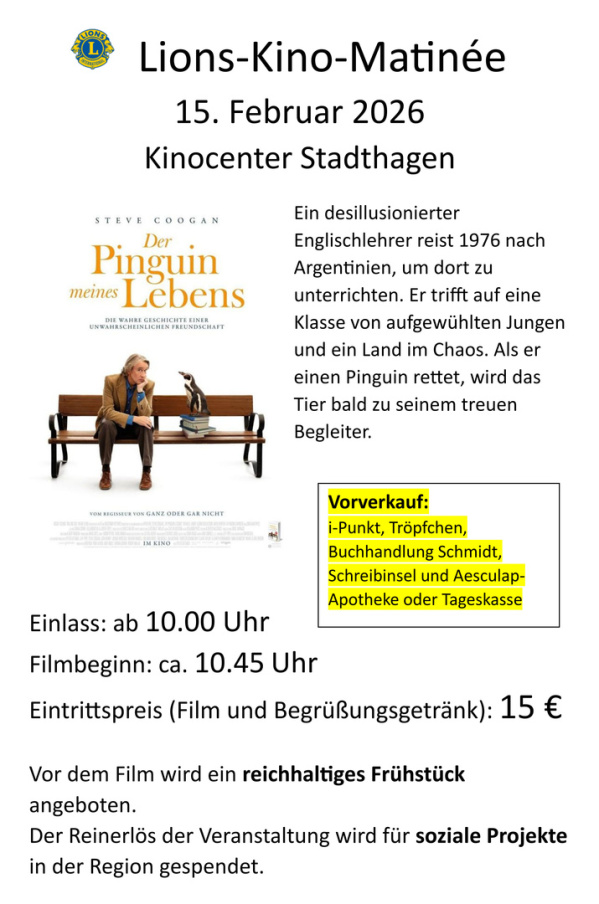 haben Sie am 15. Februar 2026 schon etwas vor? Oder vielleicht Lust auf ein berührendes Kino-Event für den guten Zweck im Kino Center Stadthagen?
