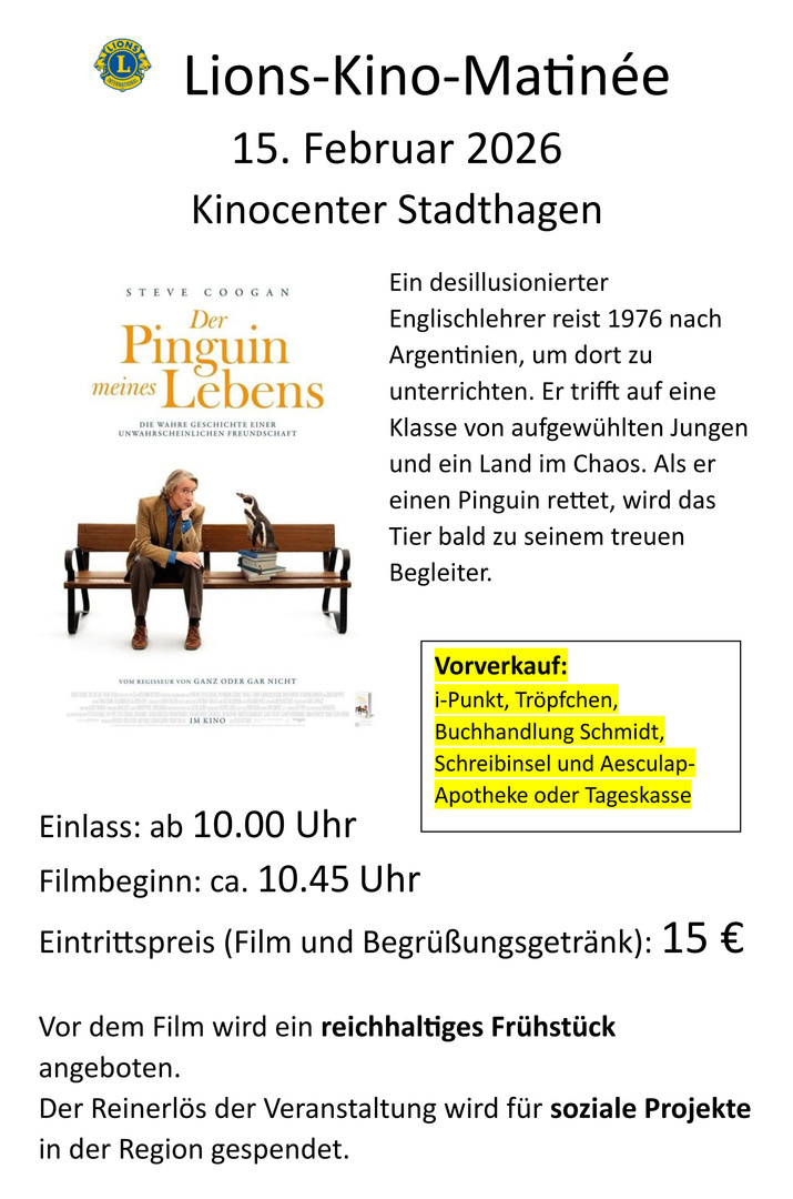 Tickets erhalten Sie bei den Vorverkaufstellen in und rund um Stadthagen (siehe Poster), oder per Mail an kinoevent2025@web.de oder an der Tageskasse.