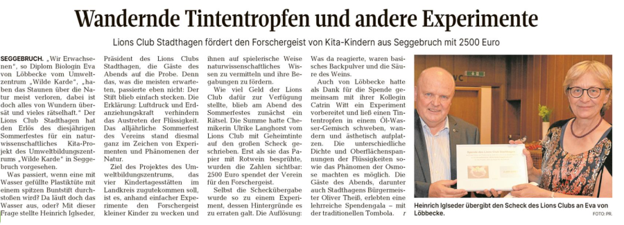 Hanauske und Frau Karin Gümmer vom Präsidenten Peter Wellmann die Spende entgegen. Der Lions Club Stadthagen setzt damit seine Unterstützung förderungswürdiger örtlicher Institutionen